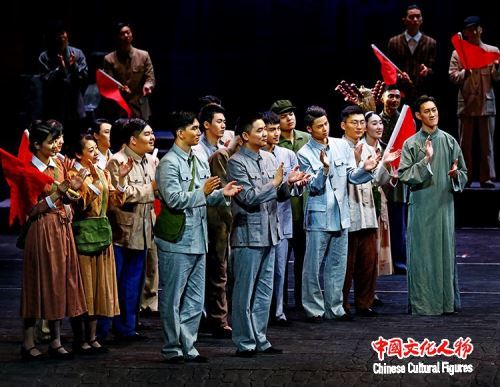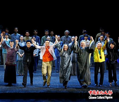 总导演黄定山、指挥黄炎佳、音响设计宋多多等主创人员和王宏伟、张海庆等主要演员向观众致谢