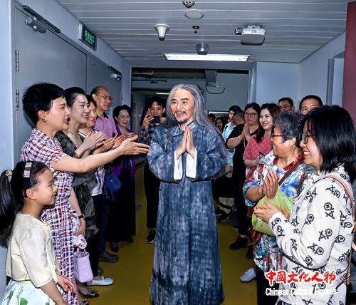著名男高音歌唱家王宏伟在舞台上倾情演绎了阿炳饱尝苦难、追求光明的一生,在后台受到热心观众的夹道欢迎