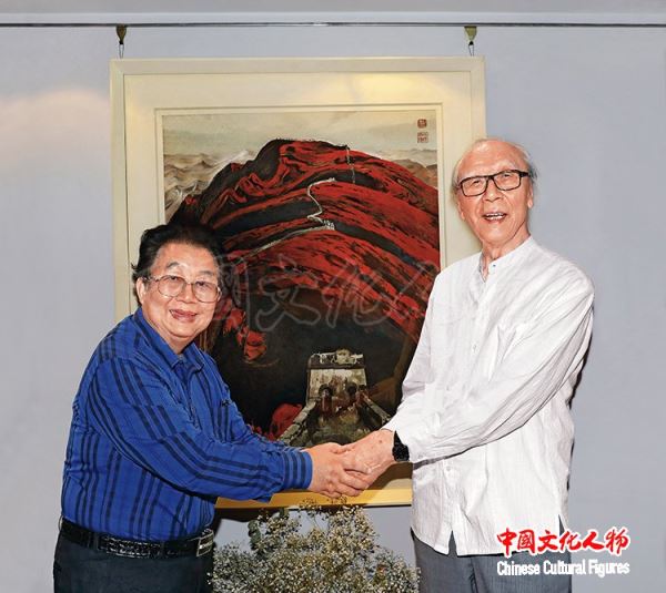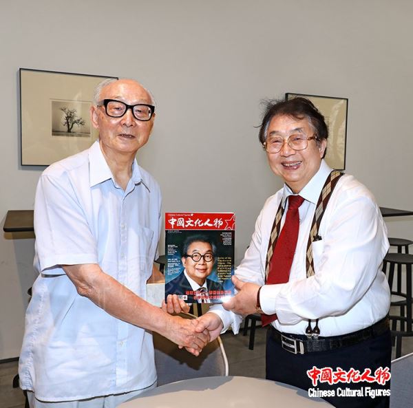 蔡居向邵大箴赠送《中国文化人物》杂志为此次展览编辑出版的特刊,邵大箴对《中国文化人物》杂志关注中国文化大家、弘扬中华传统文化、推动世界文化交流所作出的贡献给予高度赞誉