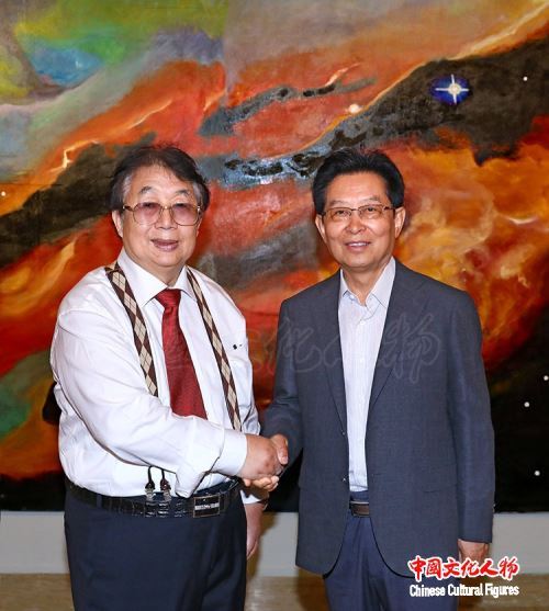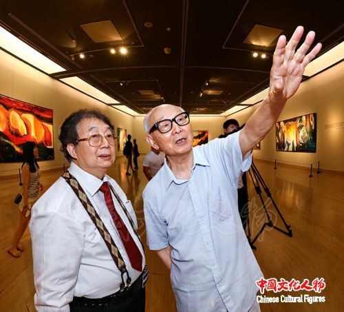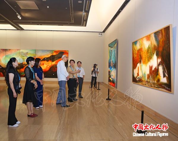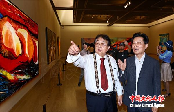 6月5日,中共中央宣传部原秘书长、中国政研会副会长官景辉来到中国美术馆,在著名油画家蔡居的陪同下参观“雕琢复朴——蔡居抽象画展”,对蔡居在抽象艺术领域取得的成就给予高度赞扬