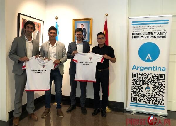 阿根廷驻中国大使馆官员就阿根廷足球在中国的发展、两国间的足球交流,包括球员的输送等同铂烽体育一行交换了看法;同时特意询问了由铂烽体育发掘、输送并签约河床足球俱乐部的中国球员吕孙豪的情况,希望铂烽体育能举办两国足球友谊赛,向阿根廷输送更多优秀球员,为两国体育交流做出更大贡献。