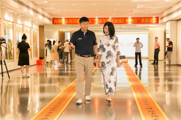 为庆祝中华人民共和国建国七十周年,向伟大祖国献礼,由纽约商务杂志社社长、全美中国作家联谊会执行主席、著名学者,旅美作家褚成炎教授和国家机关老干部科学健康协作中心副主任、中国部长将军画院秘书长、著名军旅书法家谭文贵先生共同创作完成的百米长联,今天在共和国将军部长见证下,首次解开她神秘的面纱,由中国部长将军画院正式对外发布。并将陆续邀请百名将军部长签字题跋,共祝中华人民共和国建国七十周年。同时,《百米长联神州行全国巡展活动》也将正式拉开序幕。