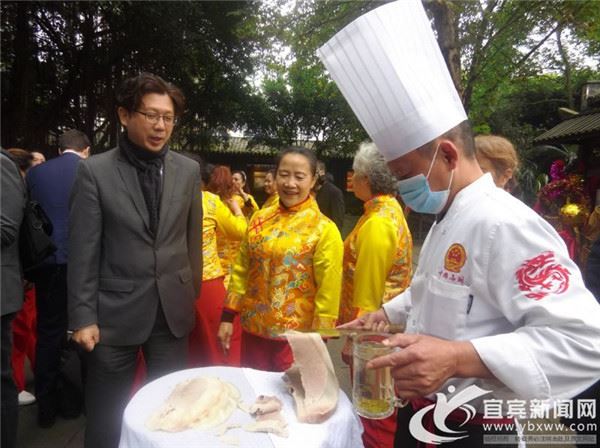 鉴赏李庄白肉刀功。(宜宾新闻网 赵雪松 摄)