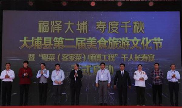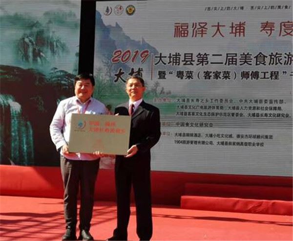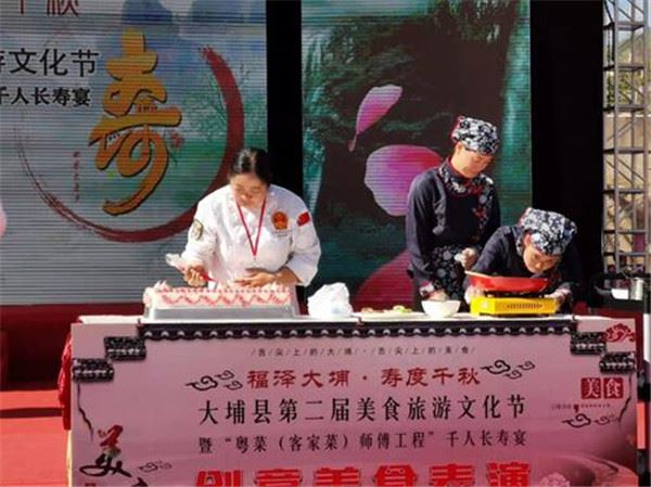 11月23日上午,大埔县第二届美食旅游文化节暨“粤菜(客家菜)师傅工程”千人长寿宴在广东省梅州市大埔县西湖公园万人广场盛装启幕。活动现场,中国食文化研究会授予大埔“中国•梅州大埔长寿美食乡”称号,授予大埔县瑞锦酒店“中国食文化研究会客家菜(大埔小吃)研究培训基地”的荣誉称号。同时,举行了“中国首个客家菜研究培训基地”颁发仪式。此外,来自珠三角、港澳地区的游客与美食专家、民间美食达人等千余人一起品尝了大埔的长寿美食。