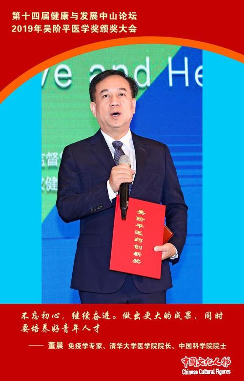 免疫学专家、清华大学医学院院长、中国科学院院士董晨发表获奖感言,表示今后要不忘初心,继续奋进。做出更大的成果,同时要培养好青年人才