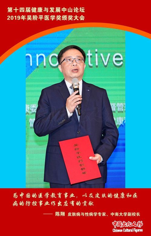 皮肤病与性病学专家、中南大学副校长陈翔发表获奖感言,他表示,一定在今后的工作中,为中国的医学教育事业,以及皮肤的健康和疾病的防控事业作出应有的贡献