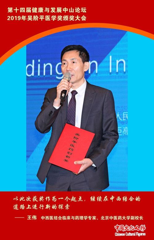 中西医结合临床与药理学专家、北京中医药大学副校长王伟发表获奖感言,他说,我将以此次获奖作为一个起点,继续在中西结合的道路上进行新的探索