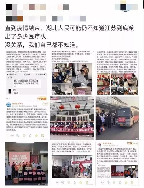 与其他支援的兄弟省市稍有不同,除了省一级的支援,江苏13个地级市南京、无锡、徐州、常州、苏州、南通、连云港、淮安、盐城、扬州、镇江、宿迁、泰州等均有医疗队伍奔赴湖北。