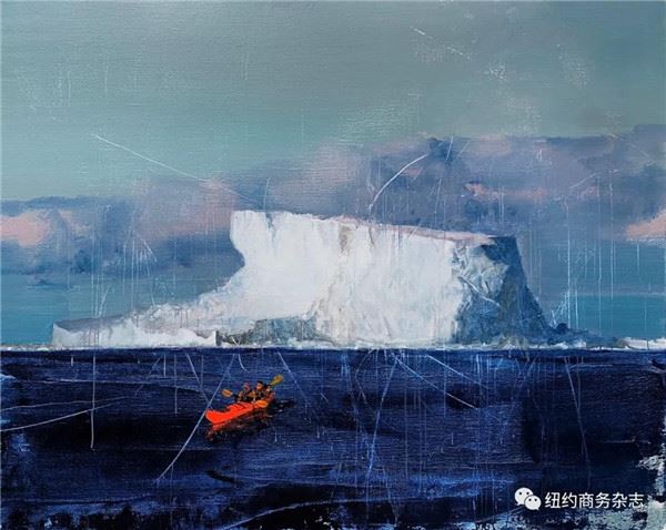 明华的风景画猛一看似乎有些"粗野",其实不然,画家的心思不乏缜密,若定睛细观会发现,汪洋恣肆的画面中时常留有一隅空旷与静寂,静寂处可以寻见一抹小舟,舟中立一小人。人极小,小到看不到五官和任何细节,他就那样立着,任小舟随意漂流。