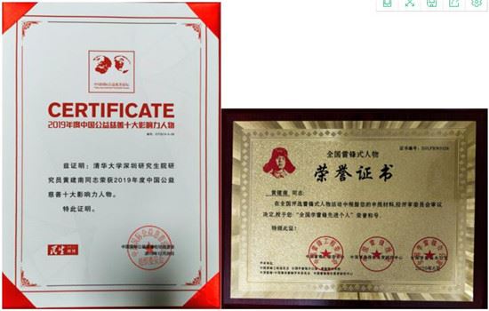 ▲黄建南膺“2019年全国公益慈善十大影响力人物”及“2020年全国学雷锋先进人物”