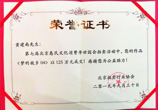 ▲黄建南的作品《梦的故乡04》拍得125万元并全数捐出