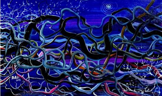 打破学院派的常规创作手法,利用超然主义的表现手段大胆夸张,体现对自然物象的主观遐想。这就是黄建南的艺术特色,也是黄建南努力创新实践的方向……