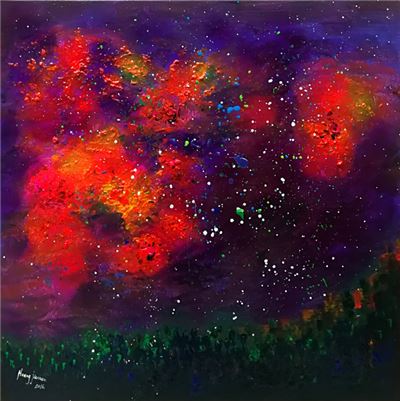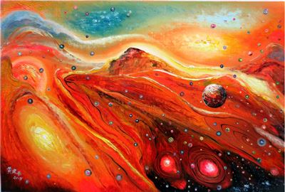 建南的画(如上图《起源》及下图《红红火火》)值过千万美元、上亿美元?是的,千真万确,估价者是美国大名鼎鼎的著名经纪人。这位名叫迈克.亨.德格兰(Michael Sean Degnan)的经纪人,是美国比佛利山庄艺术资深经纪人和媒体总监、法国Mondial Academia Art艺术节的资深评委,有“千万艺术经纪人”之誉(因经他出手的单幅画作都不会少于上千万美元而得名),目前在全球油画、雕塑艺术品销量排名第一。