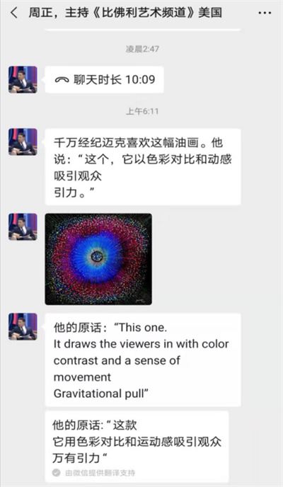 ▲周正转述迈克.亨.德格兰对黄建南作品的评价(微信截图)