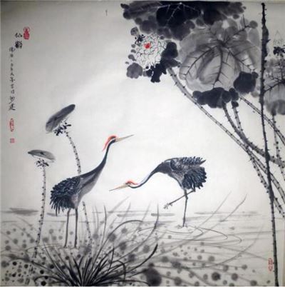 ▲黄建南国画作品《仙鹤》