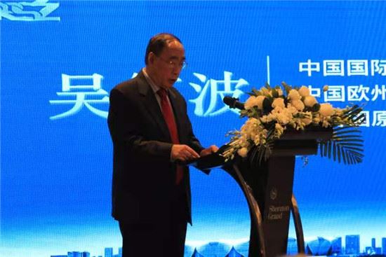 图为中国国际公关协会会长、中国欧盟事务特别代表、联合国原副秘书长吴红波讲话。