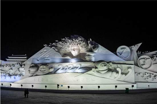 长春冰雪新天地中的冰雕雪雕。梁琪佳摄