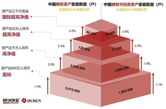 一条消息是:胡润研究院2月8日发布《2020方太·胡润财富报告》,显示,中国千万(人民币,约200万新元)资产家庭达202万户,亿元资产家庭13万户,拥有3000万美金的“国际超高净值家庭”数量达到8.6万户。