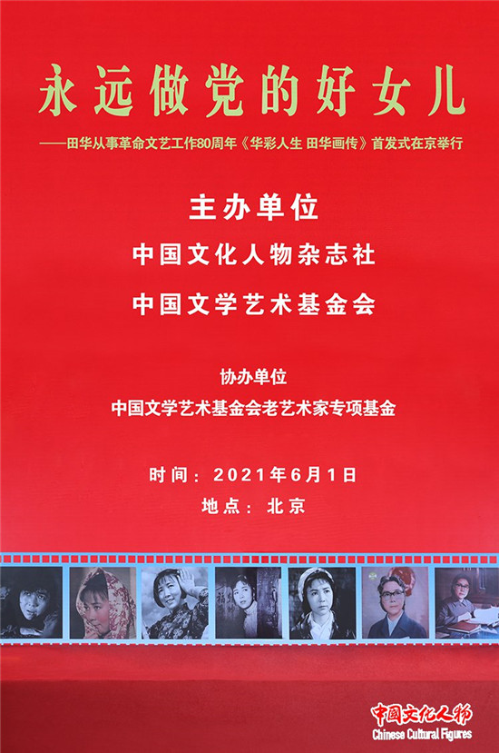 为庆祝中国共产党成立100周年,由中国文化人物杂志社、中国文学艺术基金会等单位主办,中国文学艺术基金会老艺术家专项基金协办的“永远做党的好女儿——田华从事革命文艺工作80周年《华彩人生 田华画传》首发仪式”于6月1日在北京举行